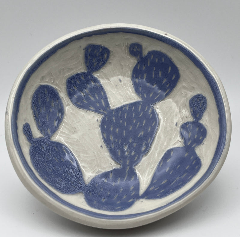 This adorable round dish with a blue prickly pear pattern is perfect for your jewelry, change, keys or even for prep work in your kitchen!