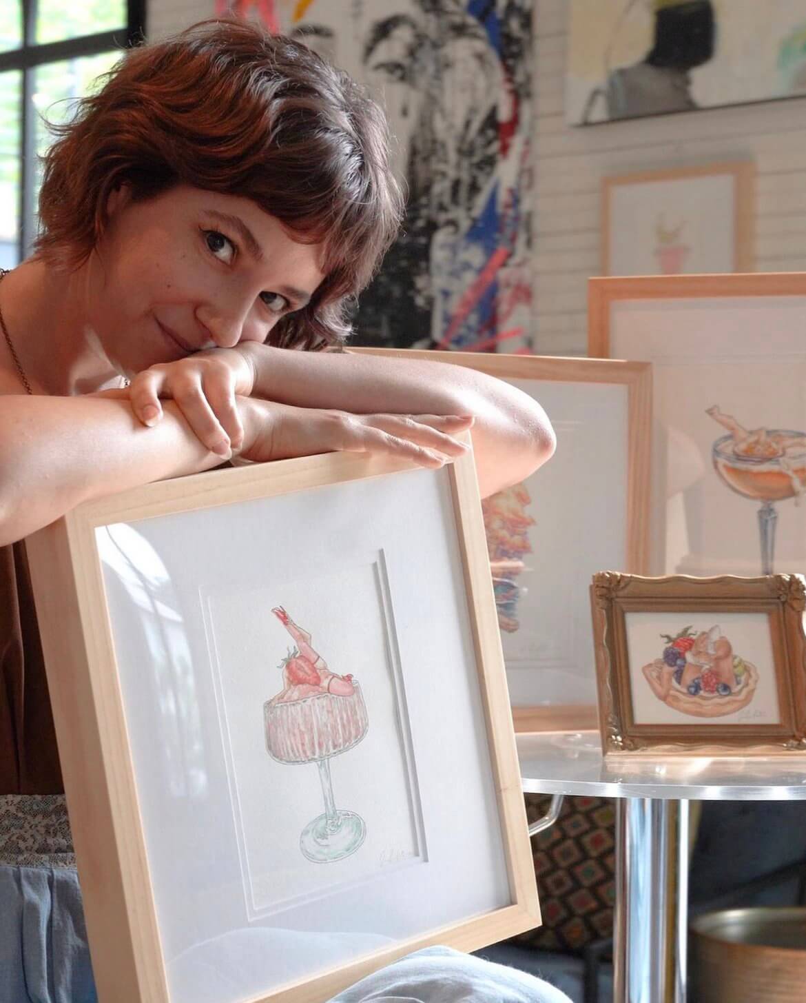 The artist behind Maridad Studio, Jennifer Pate, creates whimsical yet thought provoking figurative illustrations that tap into the uncanny and imaginative spaces of mundane life. Based in Austin, TX, the artist is constantly absorbing new inspiration from the culturally diverse food scene, uniquely crafted cocktails, and personal interests in exploring and understanding the nature of the world around her. By reflecting on her own experience as a Hispanic Queer female artist, Jenn produces surreal depictions as a way to expand on limiting structures of identity. What started in 2017 as a meditation on temptation has since evolved into an ever-growing series that binds her penchant for figure drawing and interest in movement, body language, health, and sexuality.