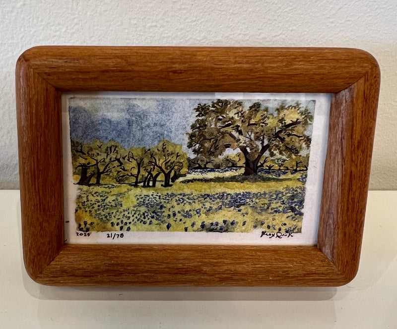Live Oak and Bluebonnets Mini Print by Alex Quirk + Wood Frame