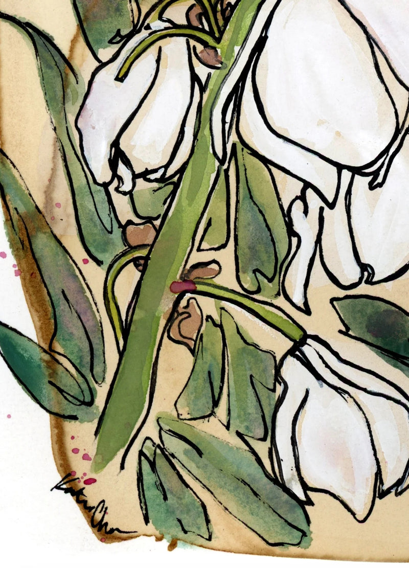 Katie Chance completed her BFA from the Savannah College of Art and Design (SCAD). Her newest body of work, Austin Skylines are large scale watercolor and oil pen paintings of the captivating downtown landscape often mixed with her popular Texas Wildflowers series. All three bodies of work follow Katie’s signature style of continuous, line illustrations also seen in her provocative Girls series. She finds constant inspiration by her backyard garden in South Austin and the entire city in which she lives. Katie works with watercolor, ink and gouache.